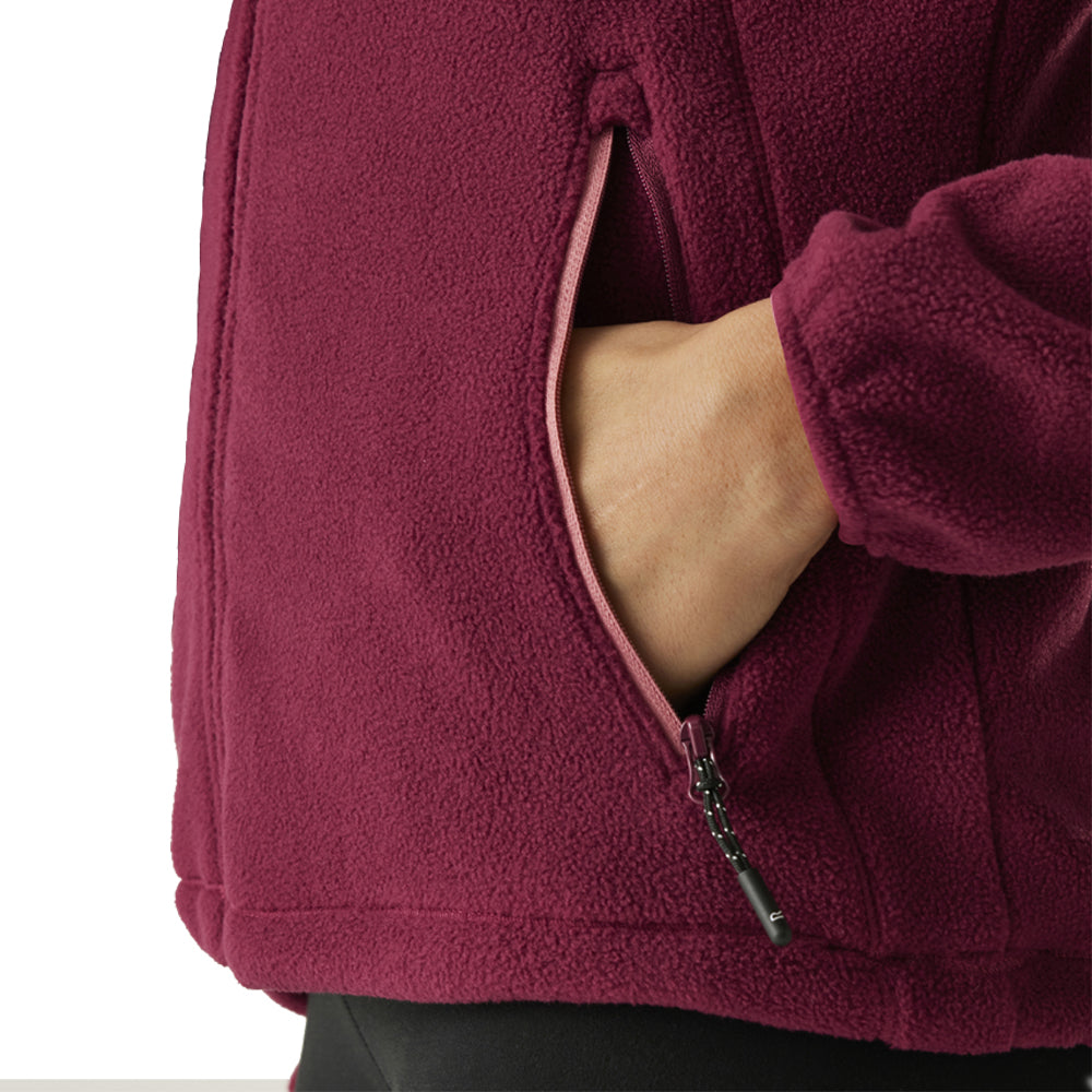 La zip integrale della giacca in pile da donna offre una vestibilità comoda.