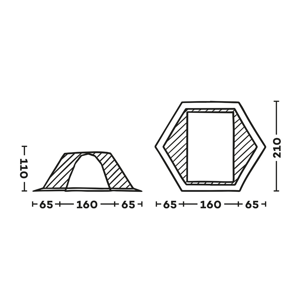 • Tessuto del pavimento: 70D, 95 g/m2, Poliestere, spalmatura poliuretanica, impermeabilità 8000 mm, idrorepellente PFC free