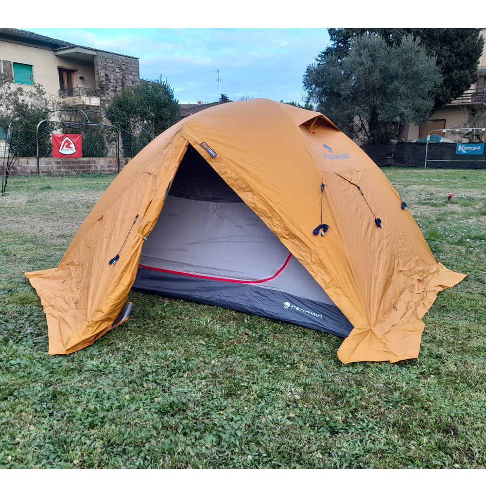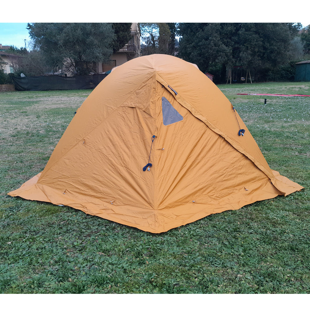 Per chi ama fare escursioni in tutte le stagioni senza farsi sorprendere dalle basse temperature. Il telo esterno Fly Pro è progettato per i climi freddi e condizioni meteo difficili: aumenta l’isolamento della tenda grazie allo speciale tessuto alluminato. Utilizzabile anche in climi caldi aumentando l’aerazione della tenda gestendo le cuffie di ventilazione ed arrotolando la falda. L’interno mantiene il calore anche d’inverno. La paleria è in alluminio.