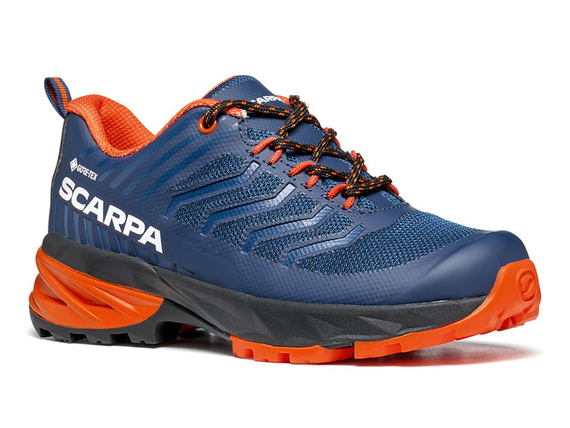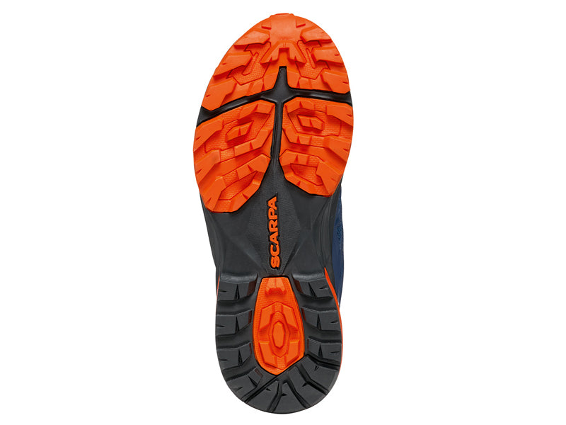 TOMAIA: In mesh, con gabbia esterna in film termosaldato di sostegno, by SCARPA. La tomaia include un puntale di protezione agli urti interno.