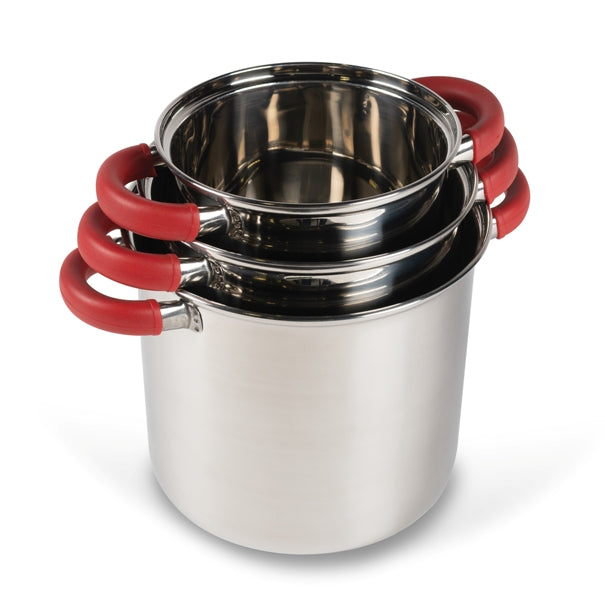 Leggero e robusto con la sua costruzione in acciaio inossidabile di alta qualità, Space Saver Deluxe offre un design salvaspazio, grazie a questo set sarà possibile impilare le pentole per uno stoccaggio compatto.